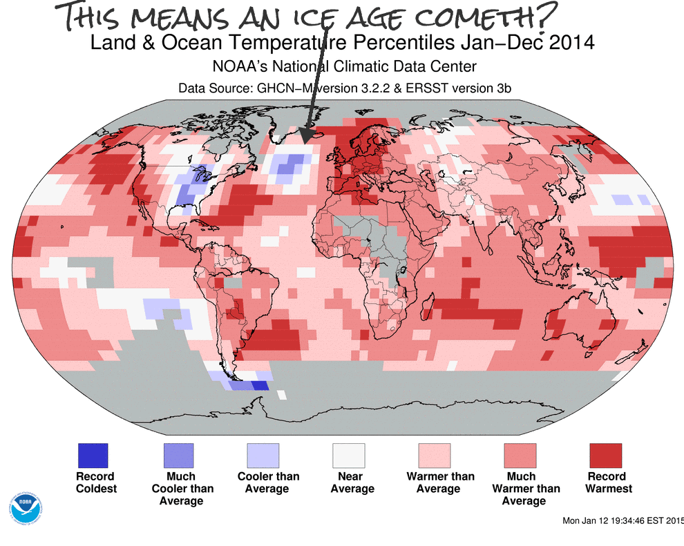 What I'm wondering, though, is how NOAA knew in 2013 what the mean annual temperature would be in 2014 (see Brakey's Figure 1). That sure seems like ironclad proof that NOAA is faking their data... :-)