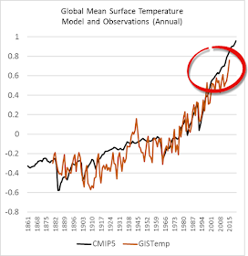 There's another new paper out in Nature Climate Change today that discusses the recent trends on global surface temperature. It's by a rash of notable authors: John C. Fyfe, Gerald A. Meehl, Matthew H. England, Michael E. Mann, Benjamin D. Santer, Gregory M. Flato, Ed Hawkins, Nathan P. Gillett, Shang-Ping Xie, Yu Kosaka, Neil C. Swart. Anthony Watts heralded the paper (archived here), which is unusual because he normally scoffs at the findings of most of these authors. He referred to an article in the Examiner newspaper, which claims that this paper contradicted "another study last June" that stated that the "the hiatus was just an artifact that “vanishes when biases in temperature data are corrected.”