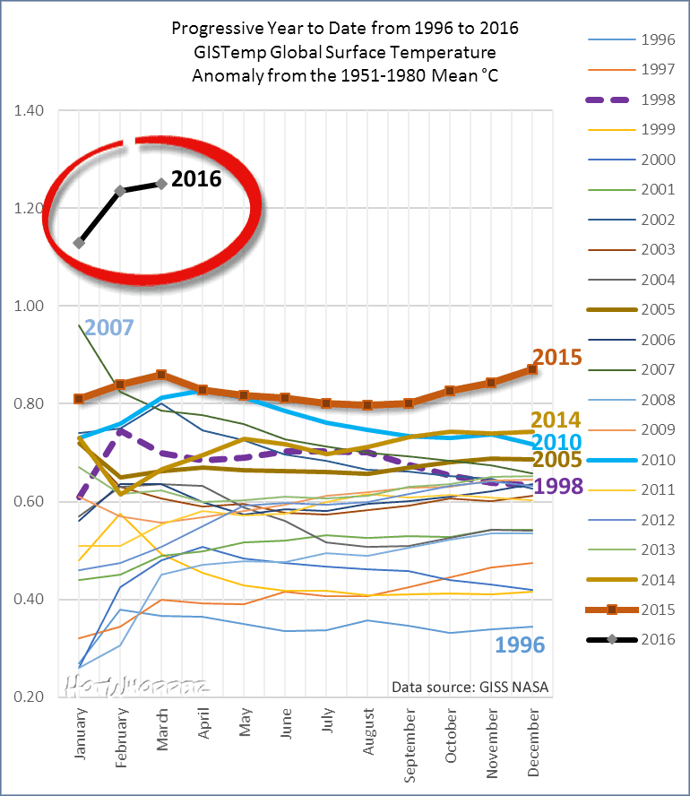 You wanna see something scary? Graph annual GISStemp, but include a point for 2016 YTD. Jaw-dropping.